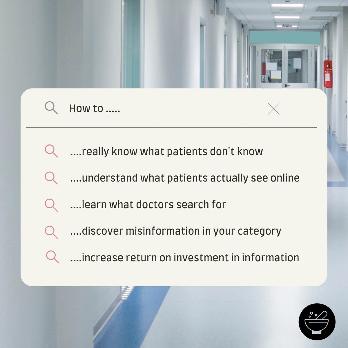 Brand Medicine International CEO, Julia Walsh, is among the first to mine Search Data for strategic insights in health. Her unique approach examines the whole information experience, following real-world questions on a topic through to the answers served back to the patients (and HCPs!) who generated the query.